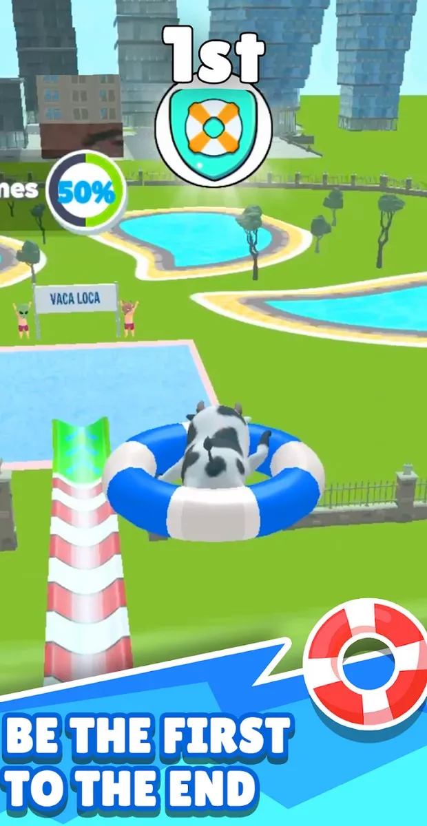 By participating in Aquapark.io APK MOD , players will go to a water park and dive down the world’s longest water slides. In the early stages, the distance is quite short and there aren’t too many turns, making movement a bit easier. However, players don’t lose focus because there are other players around. They also want to be the first to reach the finish line and claim victory, so they’ll do everything they can to overtake you or push you to your death. Track your exact location with the parameters displayed on the map in real time. A bar shows how far you’ve traveled, and a sequence number indicates your position in the race.
