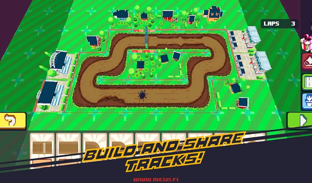 The main attraction of this pixel art racing game is that your precious resources never truly run out when buying upgrades in the dark neighborhood garage. You can maximize traction and acceleration without ever looking at your meager digital balance in a panic and utter despair. Being broke here is about as pointless as using a soft rubber fork to eat boiling alphabet soup.
