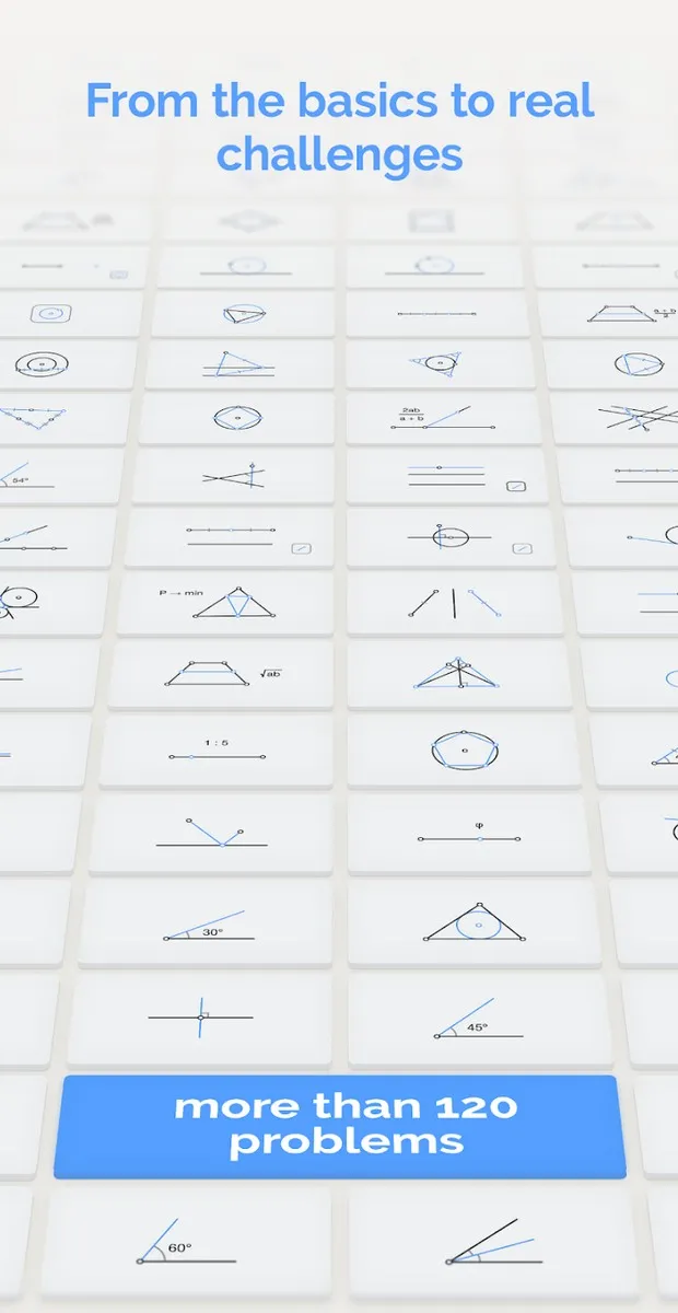 With over 120 levels available, Euclidea offers a wide range of puzzles, from basic to extremely complex. Each level is a new challenge that tests the player’s logical thinking and geometric knowledge.