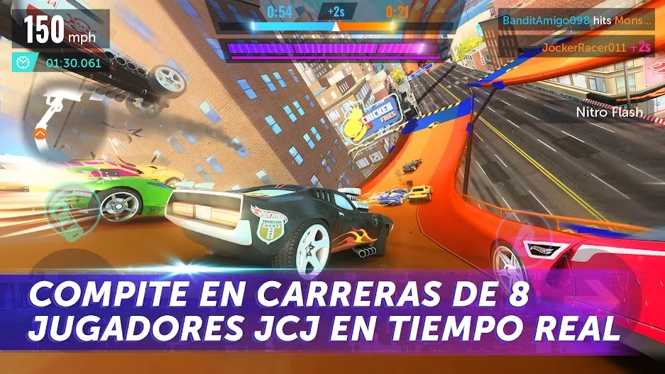 “Hot Wheels Infinite Loop” features vibrant, colorful 3D graphics. The races take place on the streets of two world-famous cities: New York and London. Both cities have their own distinct character. New York City is a bustling metropolis, with towering skyscrapers surrounding the racetrack. In contrast, London boasts a classic, regal beauty thanks to landmarks such as the Queen’s palaces and the iconic Big Bang Tower.
