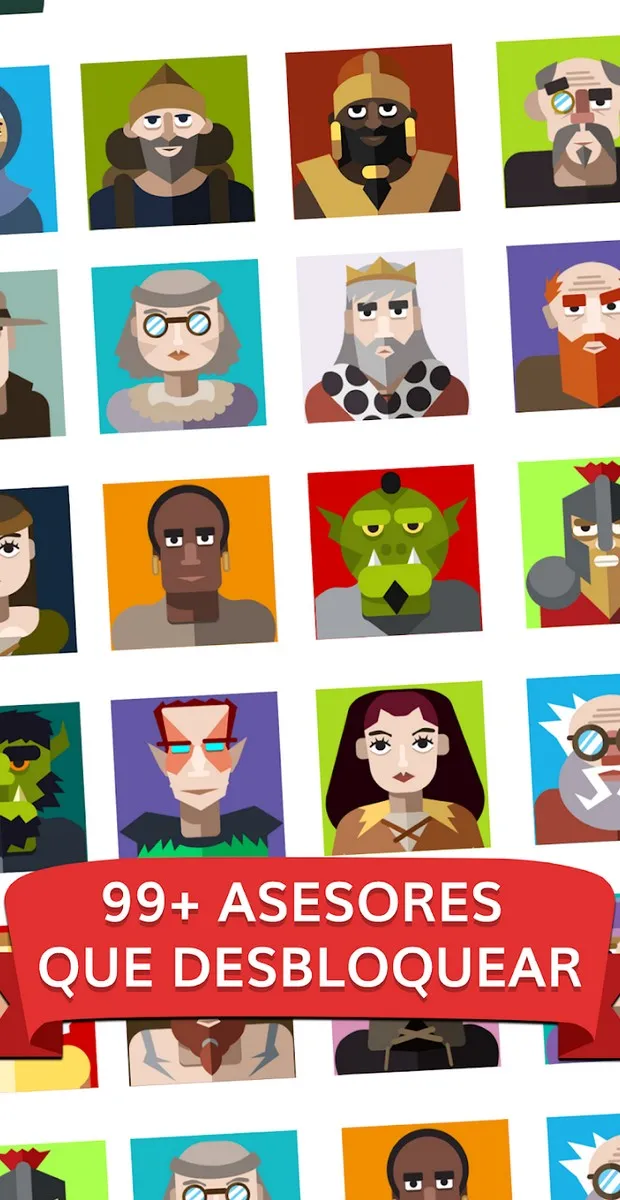 Be the operator of your medieval business, hire advisors, the best idle heroes, to get bonuses.
