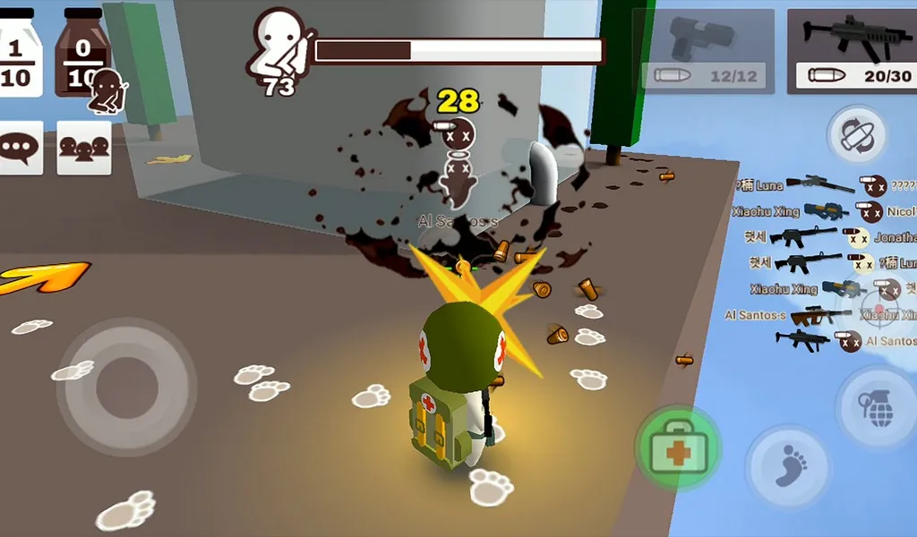 There are only four things you need to consider in MilkChoco: pistols, helmets, medical crates, and grenades. The game doesn’t have an inventory system; items you pick up are automatically replaced. You can carry up to three weapons per match. After two minutes, the playable area will shrink. If you don’t move to a safe zone, you’ll be burned. The game ends when only one person remains on the map. That person is the winner.