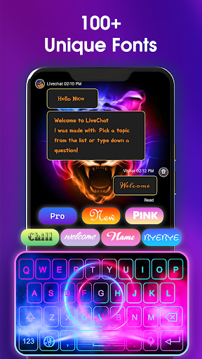 Personalize your keyboard with vibrant colors and unlimited effects thanks to Neon LED Keyboard Premium MOD . Download it now and give a unique style to every message you send.