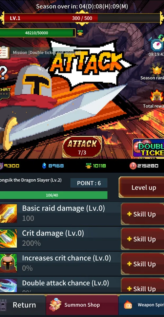 As for inactive games, they always come with a perpetual upgrade system so players can improve their hero’s strength over time. Furthermore, Retro Hero Mr. Kim is a role-playing game , so the upgrade system will consist of many different branches or elements, giving players a wide variety of options to explore. Through this system, players can upgrade all of their hero’s basic stats if they have enough money. While the value will gradually increase with each upgrade, it will significantly impact the DPS. Upgrading will unlock many different types of abilities, allowing players to develop their hero in many different directions.