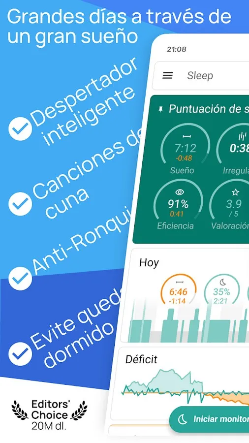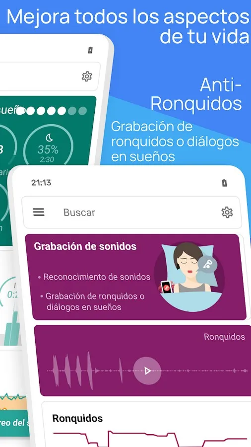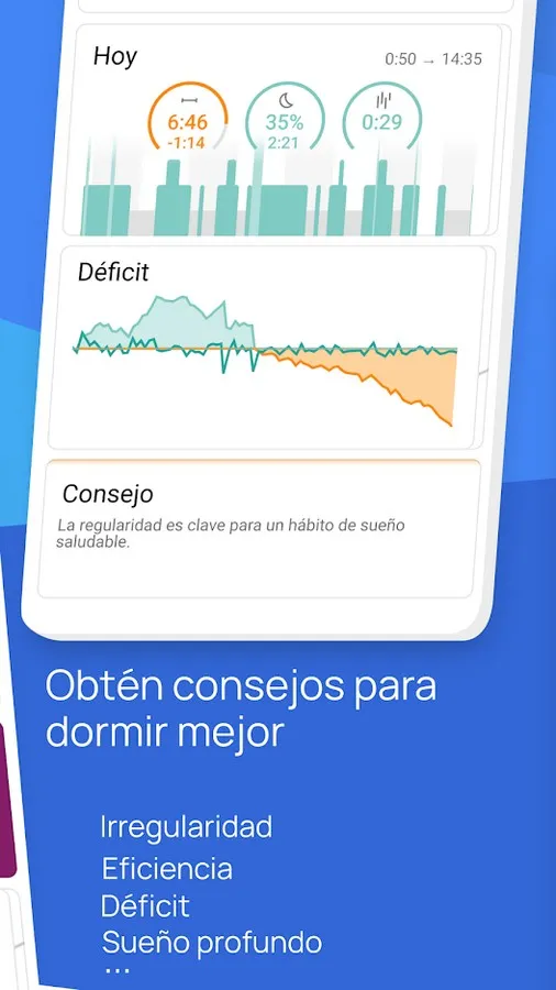 - Better rest : Analyze your patterns and improve your nights as if you had a personal coach.