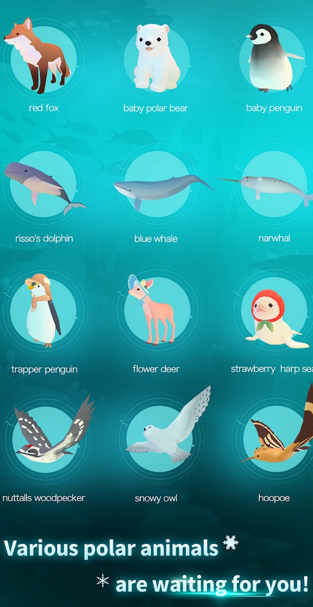 Most players need to do nothing more than tap the screen to earn in-game currency. The game’s currency is “Love,” which players tap repeatedly to collect and use to develop their iceberg. The player’s task is to build a habitat for Arctic animals. These species are all endangered, so the player must protect them. Animals like polar bears, Arctic foxes, sea lions, penguins, and many other adorable creatures await players. Initially, the player can only possess a few animals in very small numbers, making their iceberg appear sparse. However, once the player has developed their iceberg into an ideal habitat, they can unlock more creatures. Not only on land, but players can also create an underwater ecosystem to attract fish. This game has just combined the aquatic environment of the first part and added the icy environment so that players can get new experiences.