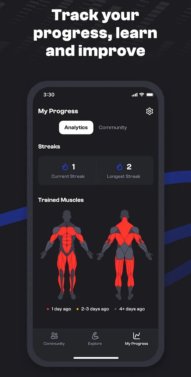 The app lets you track your progress in detail over time. You can record your reps, sets, weight lifted, and much more, helping you stay motivated and on track for success.