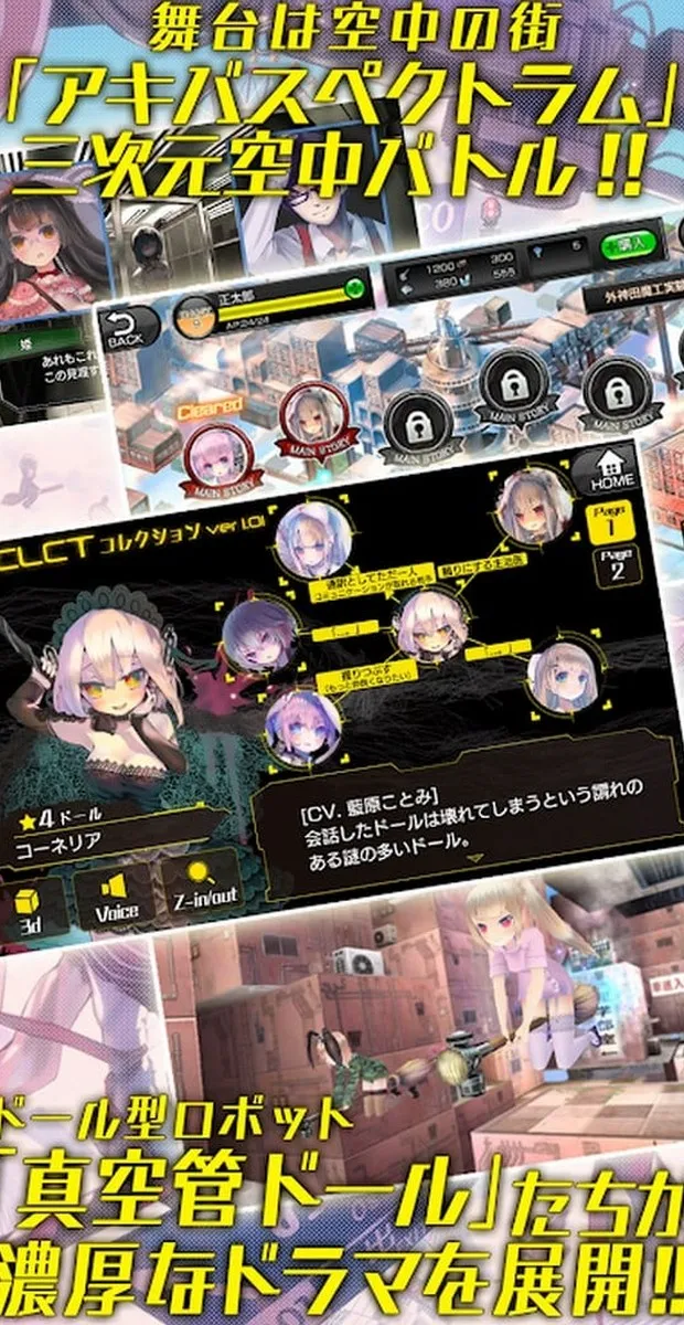 “Vacuum Tube Dolls” is set in the “3D floating city” developed by antigravity science, “Kyoto Spectrum,” a drama between the doll-like robot “Vacuum Tube Doll” that symbolizes its scientific power and the player who is the hero. It is a type of robot doll remodeling simulation game that you can experience.