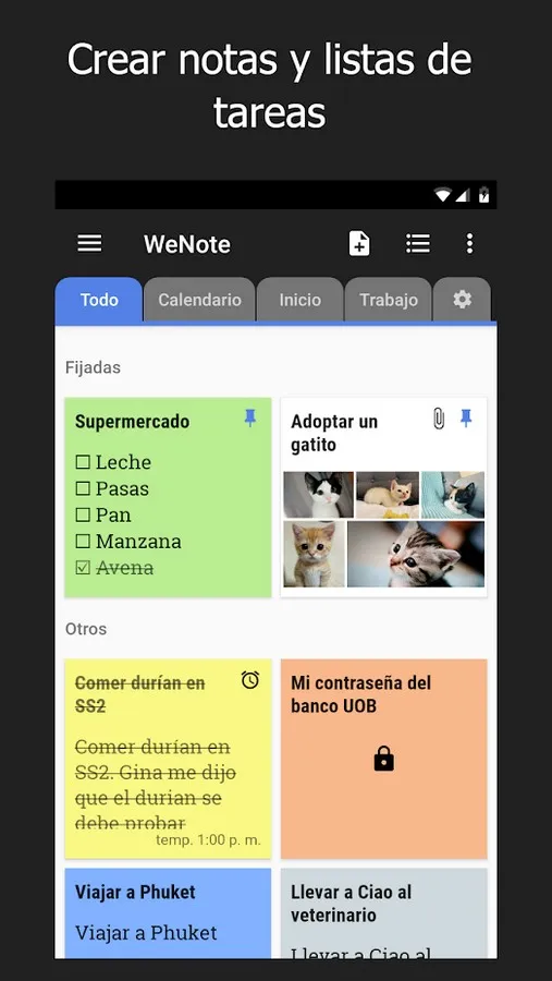 The most useful feature of WeNote is Locking Notes and To-Do Lists. You can lock your notes and to-do lists with a PIN, pattern, password, or fingerprint. This will keep your confidential information safe and out of reach of people you don’t want to see it.