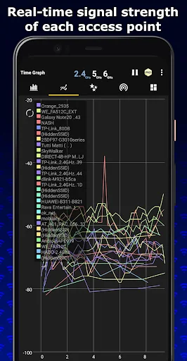 One great thing about WiFi Analyzer Pro is its ability to instantly and accurately display signal strength graphs. This saves time when you want to see past connection performance. At the same time, all the data collected in real time is recorded precisely and accurately. Furthermore, this app also supports the popular 2.4 GHz and 5 GHz bands.