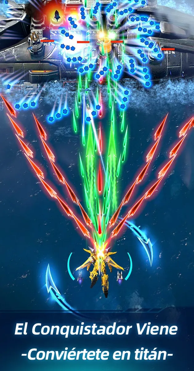 In your first experience, you’ll be fighting in intense and challenging aerial battles against powerful enemies. Your task is to control your fighter and dodge enemy attacks while your fighter automatically attacks with powerful shots. You just need to tap and swipe in the right direction to maximize the power of your cannons.